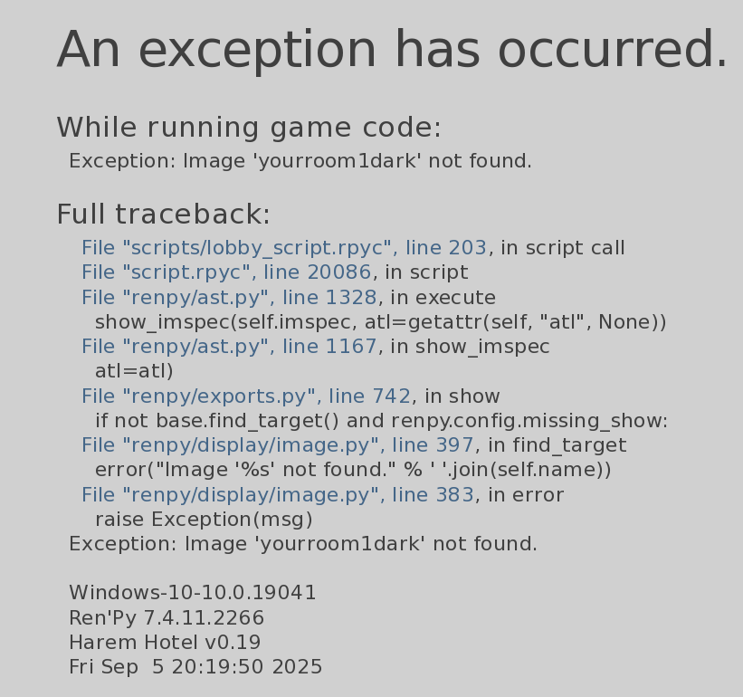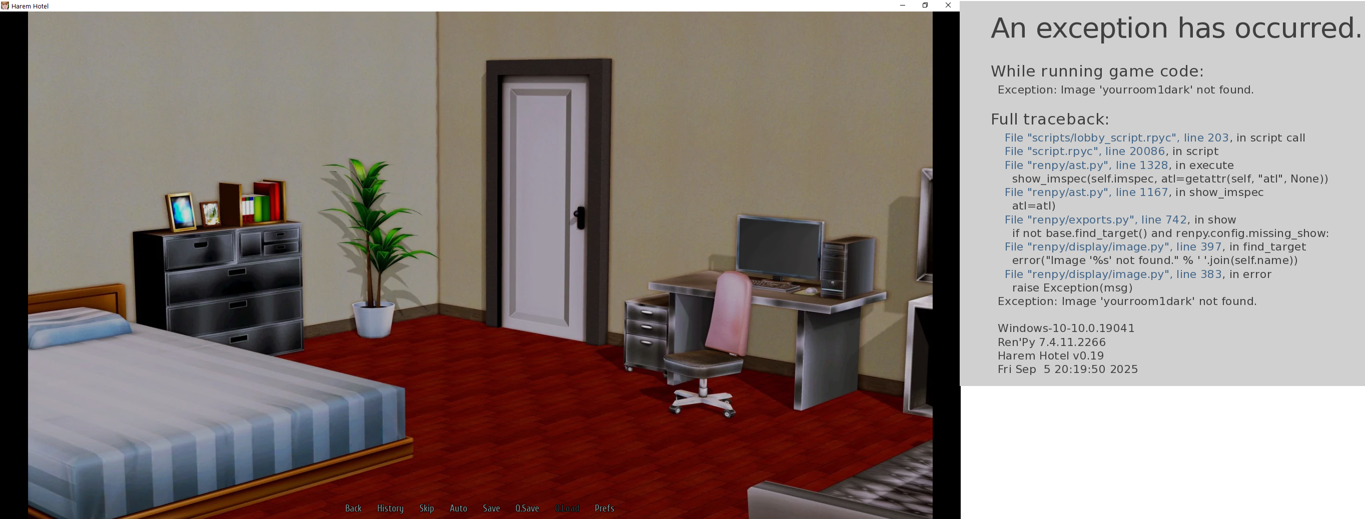 I ignored this error, and after a moment, Lin's storyline started, where a queen threatened the hero with a gun. The next error wasn't about that room, but about some garden (and it continued like that throughout the entire 1.19 storyline).