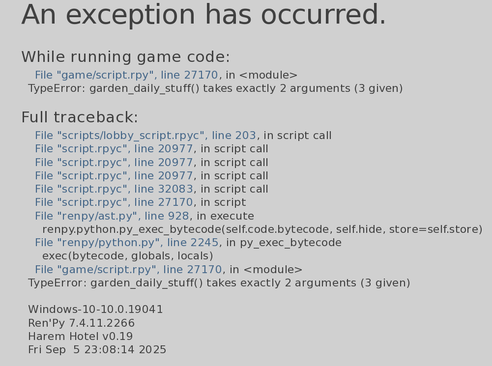 Every time the time of day changed, the "garden" error appeared, which I ignored, and somehow the game worked, but these errors also scared me.