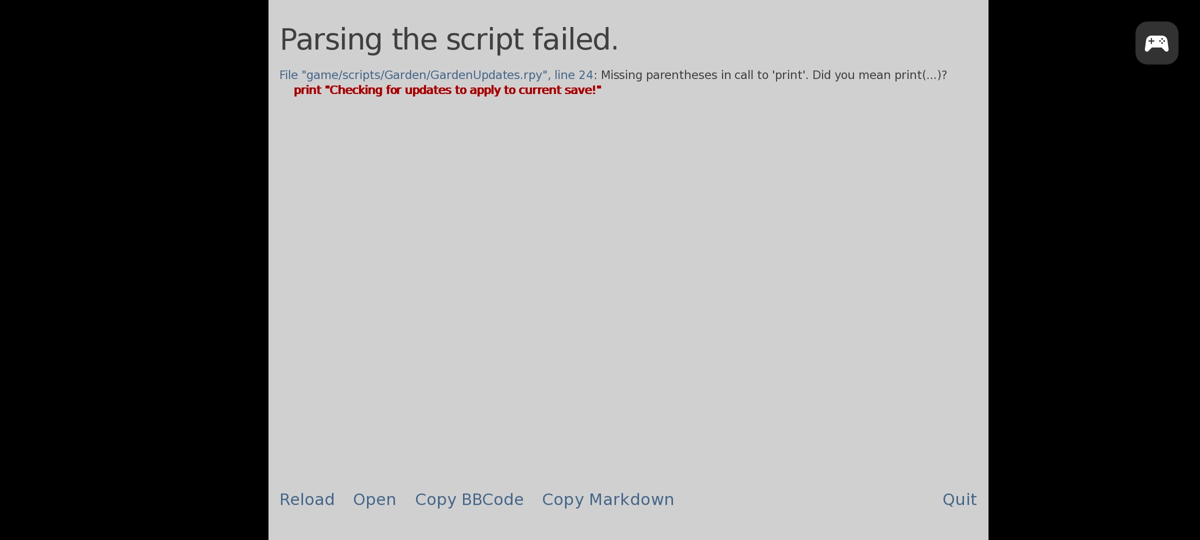 File "scripts/Garden/GardenScripts.rpyc", line 136, in script call